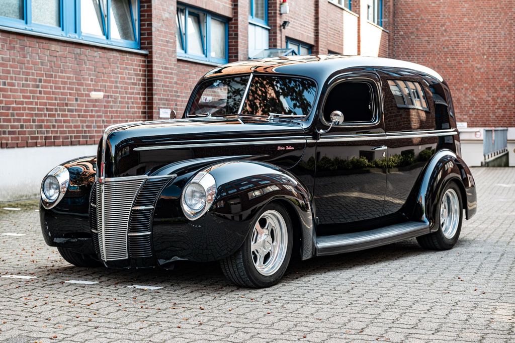 Dieser sehr seltene Ford Sedan Delivery ist in einem erstklassigem Zustand. Er wurde vor kurzem vollständig, extrem aufwendig restauriert. Bei der Restauration wurden zusätzlich einige Dinge verbessert, so dass man mit dem Fahrzeug jederzeit im heutigen Verkehr problemlos mitfahren kann. - Der Wagen hat eine Ganzstahl Karosserie mit teilweisem Holzrahmen und Dynamat Platten gedämmt und isoliert. - das Lenkrad wurde speziell für diesen Wagen handgefertigt. 350 Turbo Automatik Getriebe mit B&M Schifter. Vintage Klimaanlage, Custom Auspuffanlage, Custom Tankverschluss ohne Deckel. Bremskraftverstärker mit Scheibenbremsen vorn, Trommelbremsen hinten. Servolenkung. V8 350 Motor mit Custom Luftfilter, 750 Holly Vergaser und vielen Alufrästeilen. MSD Zündanlage, Optima Batterie. 2 Elektrolüfter für Kühler, Budni Alufelgen. Nicht sichtbare große Profi HiFi Anlage mit 9 Lautsprechern und iPhone und iPad Anschluß. Rückfahrkamera. Custom Made Lederausstaung. Original 1939 Lincoln Rücklichter, verstärktes Fahrwerk mit Stabilisatoren. Vorne Air Ride Fahrwerk. Radstand genau an die Karosserie angepasst, 9" Ford Hinterachse mit 3:55 Übersetzung. Elektrisch zu verrigelnde Hecktür, elektrisch zu öffnen. Ventilationsklappe vorn. Elektrisch zu öffnende Fensterheber mit Tipkurbeln.